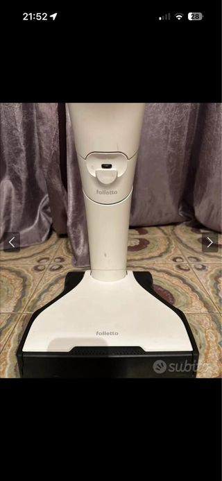Lava pavimenti Folletto SP600 S, ideale per una pulizia profonda dei tuoi pavimenti. - Modello SP600 S. - Design bianco. Con tre stracci, piastrelle, parquet e lucidatura. Usata una volta su parquet e due o tre sulla ceramica. aggiungo anche il detersivo. la macchina presenta un piccolo graffio vicino alla scritta folletto