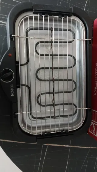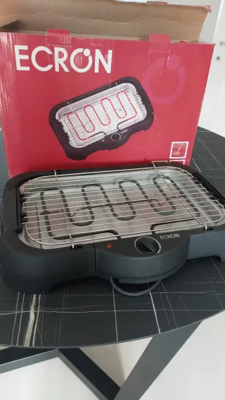 Griglia elettrica ECRON, ideale per cucinare all'aperto o in casa. Facile da usare e pulire. - Piastra in metallo. - Elemento riscaldante a serpentina. - Manopola di regolazione della temperatura.