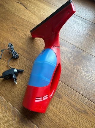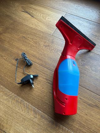Asciuga vetri elettrico, ideale per pulire finestre e superfici lisce. - Colore: rosso e blu. - Include caricabatterie.