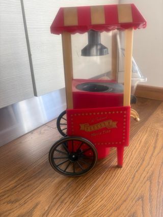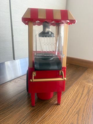 Macchina per popcorn in stile retrò, perfetta per creare un'atmosfera da cinema. - Design a carretto con dettagli rossi e dorati. - Tetto a strisce rosse e beige. - Vano trasparente per la visualizzazione. - Maniglia dorata decorativa.