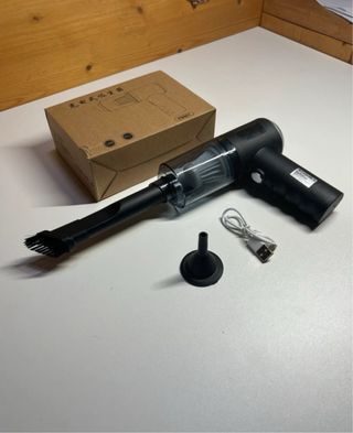 Pratico aspirapolvere portatile, ideale per pulire piccole aree. - Design compatto e leggero. - Ricaricabile tramite USB. - Include accessori per diverse superfici.