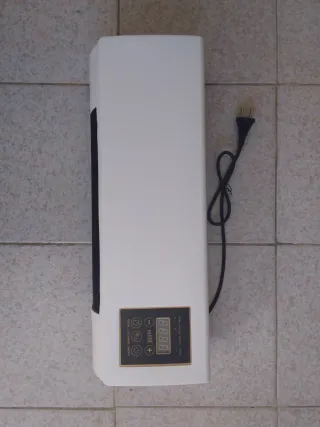 Termoventilatore elettrico da parete, ideale per riscaldare ambienti. - Design moderno e compatto. - Pannello di controllo digitale. - Telecomando incluso. N.B. ho 4pz da vendere tra cui 3pz sono imballati nella cofezione non aperti. Se interressato all'acquisto di tutti e 4pz il prezzo scende.