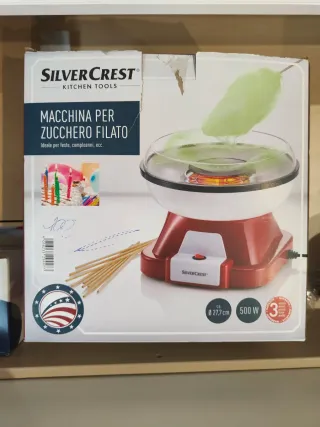 Macchina per preparare lo zucchero filato in casa, ideale per feste e compleanni. - Marca: SilverCrest - Potenza: 500 W - Diametro: circa 27,7 cm - Colore: Rosso e bianco