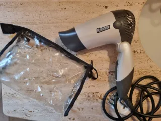 Piccolo phon Kennex, ideale per i viaggi grazie al suo design pieghevole. Include una pratica custodia trasparente.