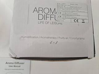 Diffusore di essenze capacità 130 ml, collegamento tramite cavo USB, funzione cromoterapia con libretto istruzioni e nella sua scatola originale