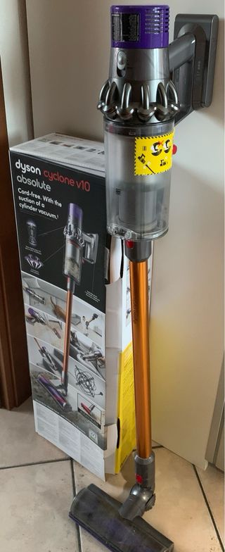 Aspirapolvere Dyson V10 Absolute in ottime condizioni (solo piccoli segni di uso in foto). Motori turbospazzole e motore corpo perfetti. Tutti i componenti originali e puliti. Vengono forniti tutti gli accessori in foto: spazzola Motorhead, spazzola Fluffy, Mini Turbospazzola, spazzola morbida, due utensili standard, tubo, alimentatore e staffa di fissaggio. Scatola originale adeguata e tutti i pezzi imballati con pluriball. Viene fornito un secondo filtro (nuovo) con propria spazzolina, da usare durante il lavaggio del principale.