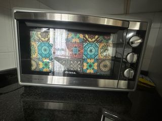 Forno elettrico da banco Ariete, modello Bon Cuisine 450. Design moderno con finiture in acciaio inox e porta in vetro. - Decorazione interna a piastrelle colorate. - Manopole per la regolazione della temperatura e del timer. - Ideale per cucinare, grigliare e riscaldare. - Marchio Ariete. praticamente immacolato vendo per mancanza di spazio acquistato il 9 settembre come si evince dalla fattura. vendo a 80 euro compreso di scatolo e fattura
