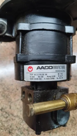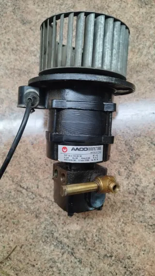 Motore per bruciatore di caldaia della marca AACO. Modello: TYP 60.2.110.22. Voltaggio: 220 V. Frequenza: 50 Hz. Potenza: 118 W. Amperaggio: 0,58 A.