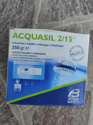 Vendo confezione sigillata di AcquaSIL 2/15® prodotta da Acqua Brevetti, specifica per pompe dosatrici proporzionali della serie MiniDUE. Il prodotto è fondamentale per proteggere caldaie, scambiatori di calore e impianti idrici domestici dalla formazione di calcare e dalla corrosione, prolungando la vita degli elettrodomestici e migliorando l'efficienza energetica. Contenuto: 4 ricariche a sacchetto+1 in omaggio. Compatibilità: Per tutti i modelli MiniDUE. Condizioni: Nuovo