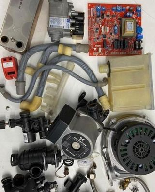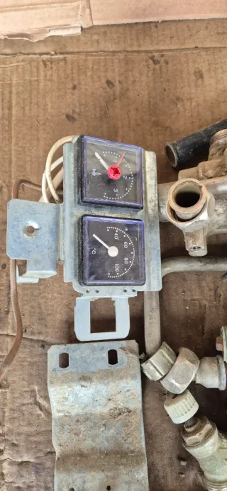 Set di ricambi per caldaia Vaillant. Vari componenti provenienti dal modello vcw e 180 E H / 18-10. Include quanto mostrato nelle foto: componenti metallici e in plastica, tubazioni, valvole e manometri. Ideale per riparazioni o sostituzioni.