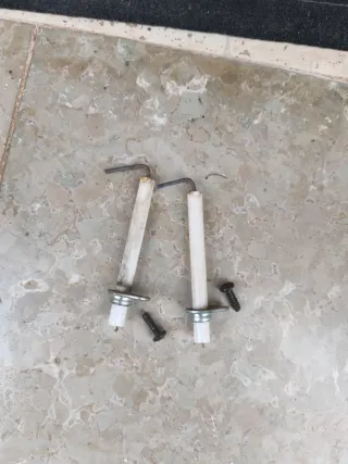 Elettrodo di accensione per caldaia Roca Victoria 24/24. Include due elettrodi e due viti. - Ricambio per caldaia. - Materiale ceramico e metallico.