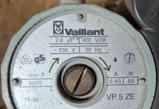 Pompa di circolazione valida per altre marche e modelli con le stesse caratteristiche. - Modello: VP 5 ZE - Tensione: 230 V - Frequenza: 50 Hz - Potenza: 89 W - Condensatore: 2,6 µF - Classe F