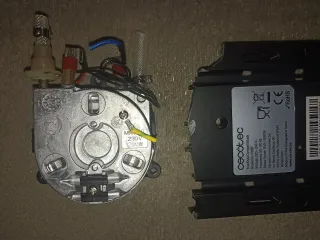 Componente di ricambio per caldaia. - Componente in plastica nera e metallo. - Design compatto.