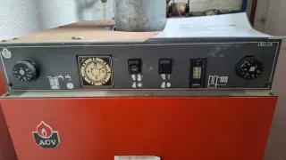 Caldaia a gasolio marca Delta, modello Cadet-30. Bruciatore Roca - Colore arancione e grigio. Ideale per riscaldamento e acqua calda sanitaria. Si trova a Puigcerdà e deve essere ritirata.