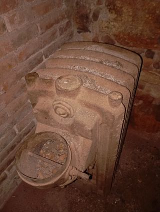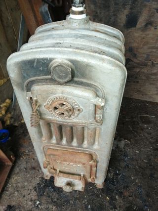 Caldaia a legna e carbone Roca serie 1. Ha dato tutto. Penso che perda un po' d'acqua tra due elementi, ma è riparabile. Disponibile così com'è a questo prezzo. È ideale per i pezzi e come decorazione molto bella.