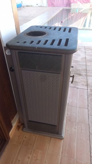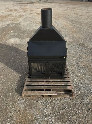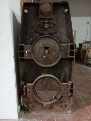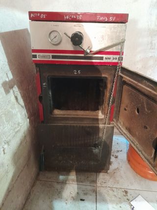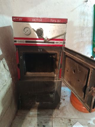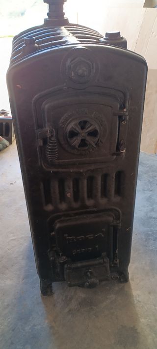 Stufa caldaia a legna. Può riscaldare una casa di oltre 200m2 mediante l'installazione di radiatori ad acqua calda. O per una stanza se la usi solo come stufa. L'ho appena smontato in uso. Non effettuo spedizioni, solo ritiro personale. Pesa molto