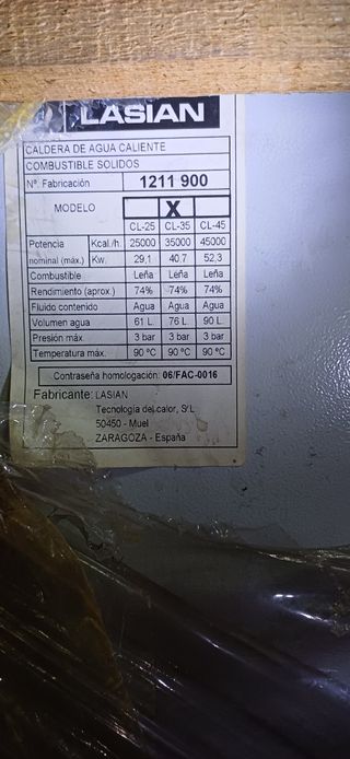 Caldaia a legna e biomassa LASIAN BIOMA. Questa caldaia ha tre opzioni di utilizzo: Solo legna da ardere, solo biomassa (pellet o ossa) o combinata, essendo in grado di consumare legna da ardere e una volta consumata passa automaticamente a pellet o legna da ardere. Include una tramoggia da 750 kg e le spazzole per la pulizia e l'aspirapolvere sono in regalo. Funziona perfettamente. In vendita per cambio aria condizionata Le parti interessate chiamano o scrivono al 685252768 o al 654760854 - Colore marrone e grigio.