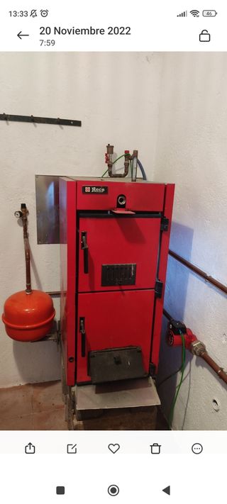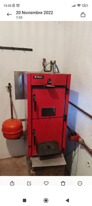 Vendo caldaia a legna usata per sistema di riscaldamento a radiatori. Ideale per chi vuole riparare, restaurare o sfruttare parti. È stata in uso fino a poco tempo fa, ma richiede revisione o messa a punto. ✅ Realizzata in acciaio ✅ Ampio vano per carico legna ✅ Griglia interna in ghisa ✅ Uscita superiore ✅ Ideale per case di paese, officine o riscaldamento alternativo Stato: usata, con segni evidenti di uso e usura, come si vede nelle foto. Non si garantisce il funzionamento attuale. Si vende come si vede. 💰 Prezzo negoziabile 📍 Ritiro in loco (Zarzuela del Pinar / Segovia)