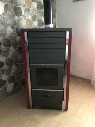 Stupenda caldaia a legna IFYIL, usata solo un anno e in perfette condizioni. È di colore rosso e grigio, con un design elegante e moderno. - Include tutti i componenti che si vedono nelle foto. - Ideale per riscaldare la tua casa in modo efficiente e sostenibile.