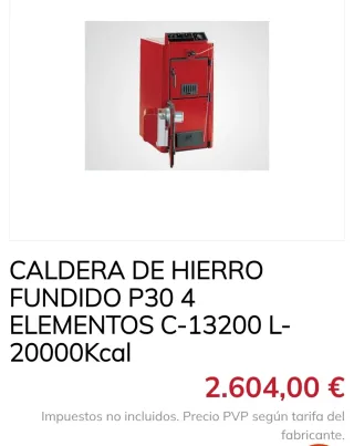 Caldaia in ghisa Baxi P30, con 4 elementi e una capacità di 20000 Kcal. - Modello: P30 4 elementi C-13200 L- - Potenza: 20000 Kcal - Materiale: ghisa - Colore: rosso È stato usato per 3 mesi. Con una garanzia di un anno. Viene rimosso perché appartiene ai miei genitori e a causa dell'età e della malattia non possono più usare legna da ardere.