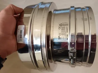 Chimenea caldaia gasolio. Legna in acciaio inossidabile a doppio muro da 1500/200mm in perfetto stato, composta da: -3 tubi da 1m -1 tubo estensibile 0,50m -1 registro con tappo e adattatore caldaia -3 gomiti a 45º +1 caperuzza o cappuccio +2 griffe da avvitare