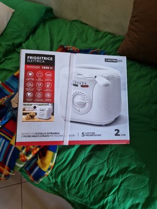 Causa inutilizzo vendo friggitrice ad aria perfettamente funzionante. Allego foto degli accessori (la maggior parte dei quali mai usati), del libricino delle istruzioni su cui potete vedere tutte le funzioni e di un piccolo libro di ricette dato in dotazione.