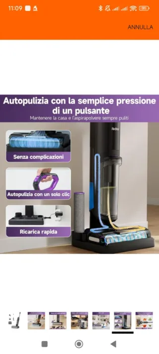 Aspirapolvere e lavapavimenti senza fili Redkey W15, ideale per la pulizia dei bordi. - Design per la pulizia dei bordi. - Pulizia a 6mm dai bordi. - Funzione angolo. - Battiscopa.