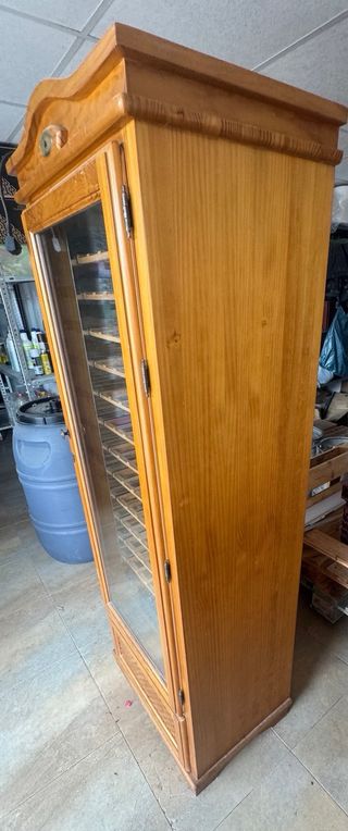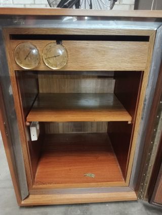 Bellissima cantinetta in legno, ideale per mantenere i tuoi vini in perfette condizioni. È in buone condizioni. - Realizzato in legno. - Include due igrometri per controllare l'umidità e la temperatura. - Ha un ripiano interno.