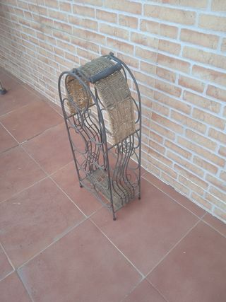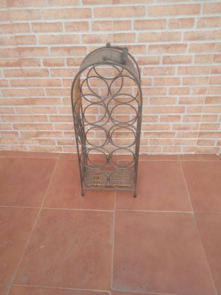 Simpatica cantinetta per vino in metallo con capacità di 12 bottiglie. Ha un design classico ed è in buone condizioni. - Robusta struttura in metallo - Capacità per 12 bottiglie. - Dettagli in vimini sulla base.