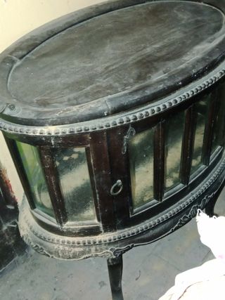 Mobili in stile rustico, ideali per riporre bottiglie. - Design ovale con dettagli decorativi. - Gambe intagliate che gli conferiscono un tocco elegante. - Porta anteriore con maniglia ad anello.