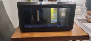 Cantinetta frigo Cavanova con capacità per 4 bottiglie. - Design moderno in nero. - Finestra frontale per la visualizzazione. - Pannello di controllo superiore. Ho 2 unità Prezzo unitario 120€ Prezzo di due unità 220€