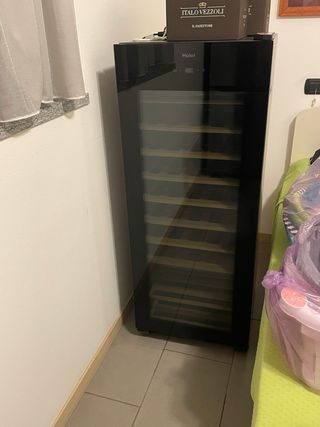 Vendo cantinetta per vino Rommer in buone condizioni. Contiene 12 bottiglie. È piccolo e compatto, ideale per piccoli spazi. - Marca: Rommer - Capacità: 12 bottiglie - Colore: nero - Design compatto
