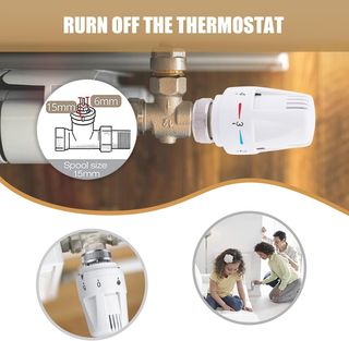 Set di sei termostati bianchi per radiatori. - Design moderno e compatto. - Facili da installare. - Regolazione della temperatura. Set di 6 termostati per termosifoni da riscaldamento. - Design moderno in bianco. - Indicatori di temperatura con segni rossi e blu. - Meccanismo di regolazione girevole. - Termostato per riscaldamento (4 unità, M30 x 1,5, valvola termostatica, testina di ricambio, termostato, radiatore, radiatore, valvola del radiatore, per ufficio o casa)