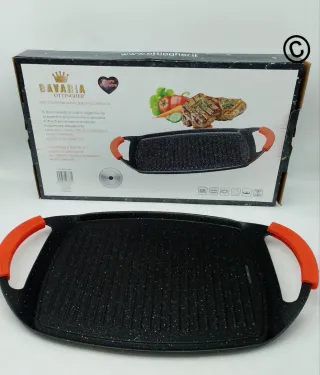 NUOVA BISTECCHIERA GRIGLIATA BAVARIA 😍😍😍 IN PIETRA LAVICA ANTIADERENTE🔝🔝🔝 CON MANICI ANTISCOTTATURA 🤩🤩 MISURA 47CM😍😍 ADATTA A TUTTI I PIANI ANCHE INDUZIONE🔝🔝🔝
