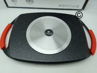 Bistecchiera Royalty line 47cm in pietra lavica Fondo liscio antiaderente Con 2 guarnizioni in silicone, adatta sia sui piani cottura a gas che su quelli ad induzione Per una cucina sana 🍃