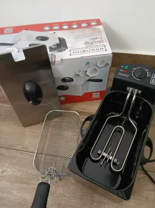Friggitrice Royalty line ad olio regolabile fino ai 190 gradi!!! Capacità 3 litri di olio Coperchio rimovibile Termostato regolabile Recipiente smaltato estraibile Avvolgicavo Sensore di sicurezza