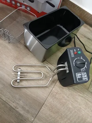 Friggitrice ad olio da 3 L, superficie interna in acciaio inossidabile, filtro in carbonio, cestello removibile, termostato regolabile, finestra superiore per il controllo della cottura. 1450 W.