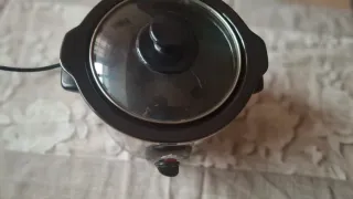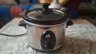 Pentola elettrica Team International per cotture lente. - Design compatto e moderno. - Finitura in acciaio inossidabile. - Coperchio in vetro con manico. - contenitore completamente in ceramica - Selettore di temperatura: HIGH, LOW, AUTO, OFF. Adatto per due persone e per preparare,oltre le classiche ricette dolci e salate, anche possiede, yougurt e kefir. Usato poche volte, pari al nuovo