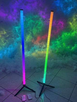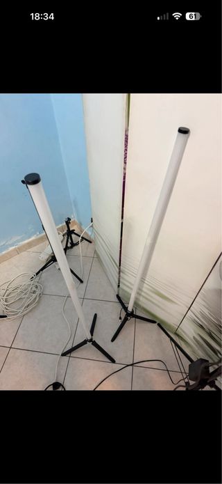 Set di luci LED professionali, ideali per creare l'illuminazione perfetta per set fotografici o video. - Due tubi luminosi lunghi. - Supporti a treppiede inclusi. - Cavi di alimentazione.