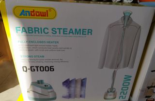 Vaporizzatore per tessuti Andowl, modello Q-GT006, con una potenza di 2200W. Ideale per rimuovere le pieghe dai vestiti in modo rapido ed efficiente. - Riscaldatore completamente chiuso. - Vapore potente per stiratura e sagomatura. - Design compatto e facile da usare.
