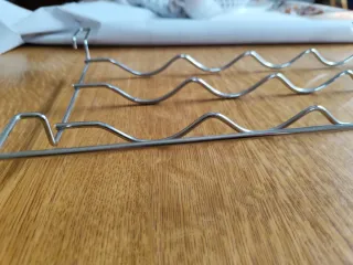 Portabottiglie in metallo cromato, ideale per organizzare le bottiglie in frigorifero. - Struttura in filo metallico ondulato. - Design salvaspazio.