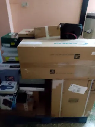 Bancale di soprese elettronica con elettrodomestici con scarpe di lusso nuovi di marca climatizzatore unità interna poi macchina per ghiaccio e vevor barbecue inox ed altro ecc
