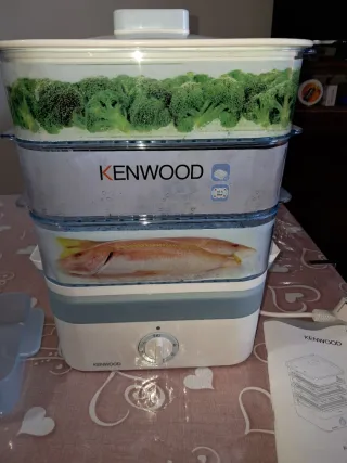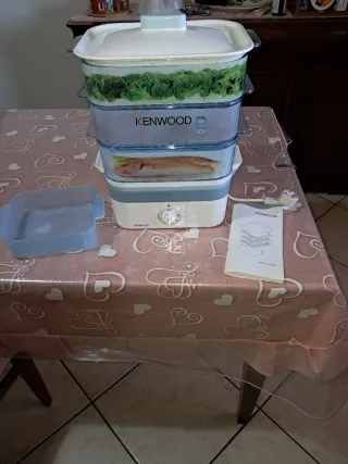 Vaporiera Kenwood, mai utilizzata. - Tre cestelli impilabili. - Ciotola per riso inclusa. - Indicatore livello acqua.