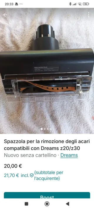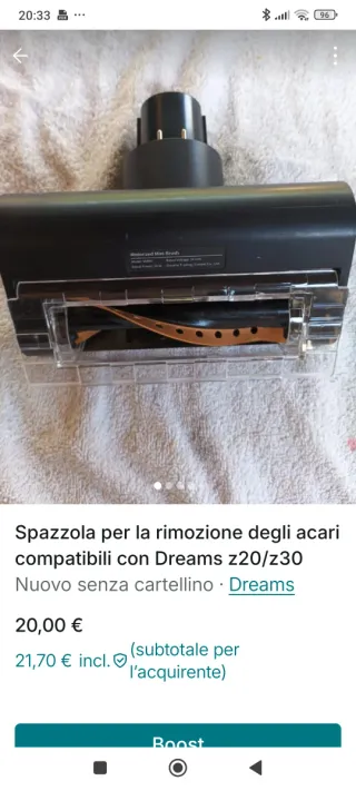 Spazzola motorizzata per la rimozione degli acari, compatibile con i modelli Dreams z20 e z30. L'articolo è nuovo e viene venduto senza la sua confezione originale. - Modello: VHMV - Potenza: 20 W - Voltaggio: 24 V