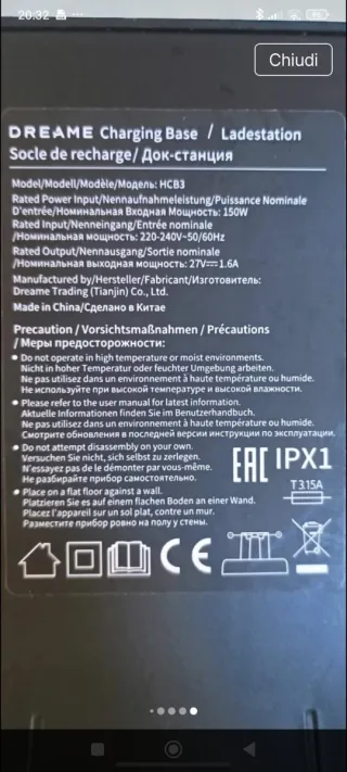 Base di ricarica e pulizia per aspirapolvere Dreame modello HCB3. - Modello: HCB3 - Potenza: 150W - Condizioni: Nuovo senza cartellino