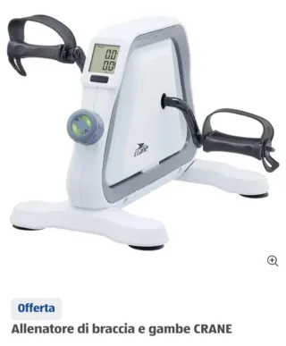 Piccolo elettrodomestico con logo Crane.compatta CRANE, ideale per allenare braccia e gambe comodamente a casa. Dispone di un display digitale per monitorare l'allenamento. - Colore bianco e grigio. - Manopola per la regolazione della resistenza. - Colore grigio e verde. - Design compatto.