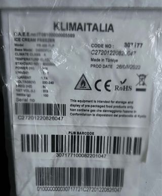 Congelatore a pozzetto statico Klimaitalia FR400FLP Porta cieca con sistema flip flop - Temperatura - 13°C/-23 °C Dim. cm. L130,5xP63xh87,5 Cod. prod. CT-275 Prezzo di listino € 544,00 + IVA Usato solo 3 giorni.