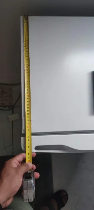 Piccolo frigorifero funziona perfettamente e ha un mini cassetto come congelatore. Misura circa 1 metro e 20 cm.