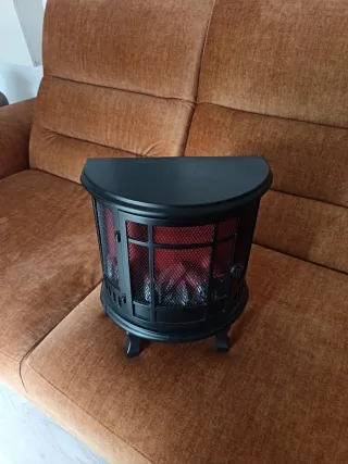 Stufa elettrica con un design elegante e moderno, perfetta per aggiungere un tocco di stile alla tua casa. La sua forma arrotondata e la finitura nera la rendono un complemento d'arredo versatile. - Struttura in metallo nero. - Effetto fiamma realistico. - Base con piedini. - Pannello frontale a griglia.
