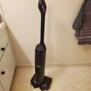 Scopa lavapavimenti Eureka, ideale per la pulizia dei pavimenti. - Design moderno e maneggevole. - Colore nero con dettagli viola. - Marca: Eureka.